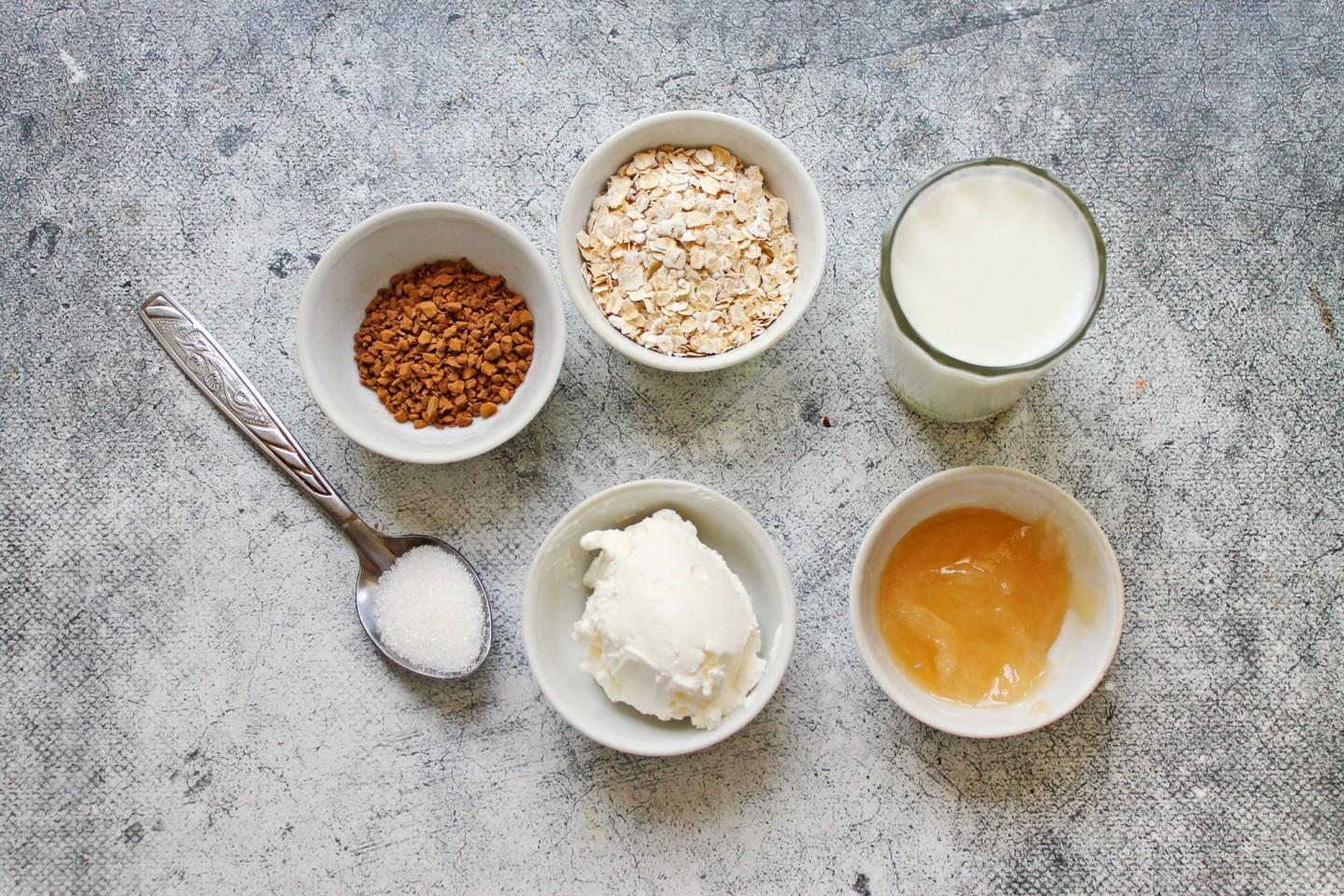 Как подавать овсянку Тирамису с маскарпоне? Подготовьте все необходимые ингредиенты для подачи.