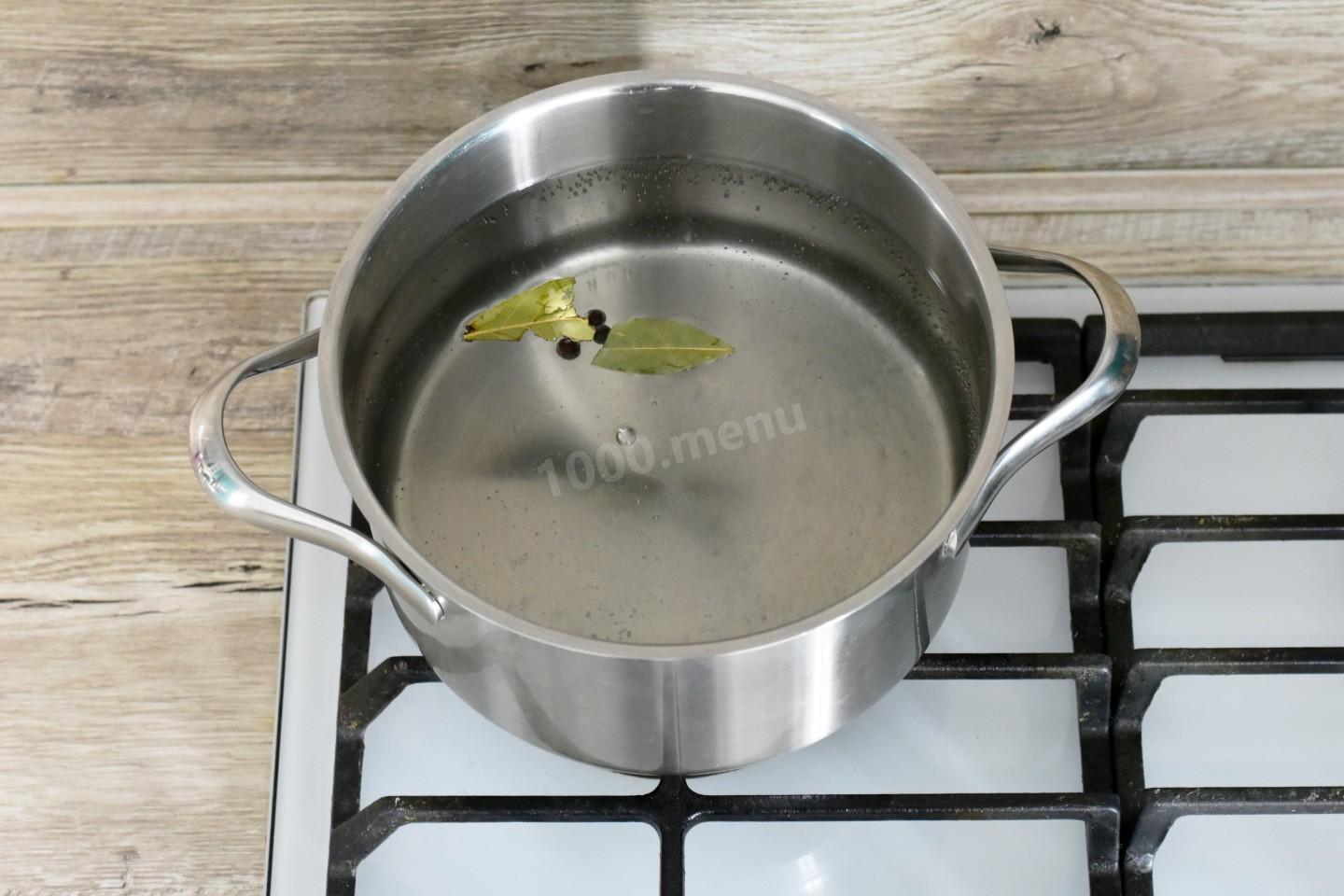 На плите вскипятите большое количество подсоленной воды из расчета: на 100 г пасты примерно 1 л воды и 1 ст. л. соли без горки. Для ароматизации добавьте лавровый листик и горошины душистого перца. О том, как выбрать идеальную кастрюлю читайте в статье под шагами.