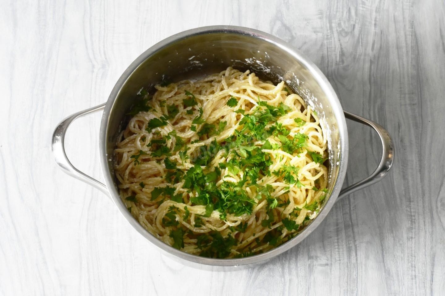 Спагетти можно заменить на фетучини, пенне или ракушки.