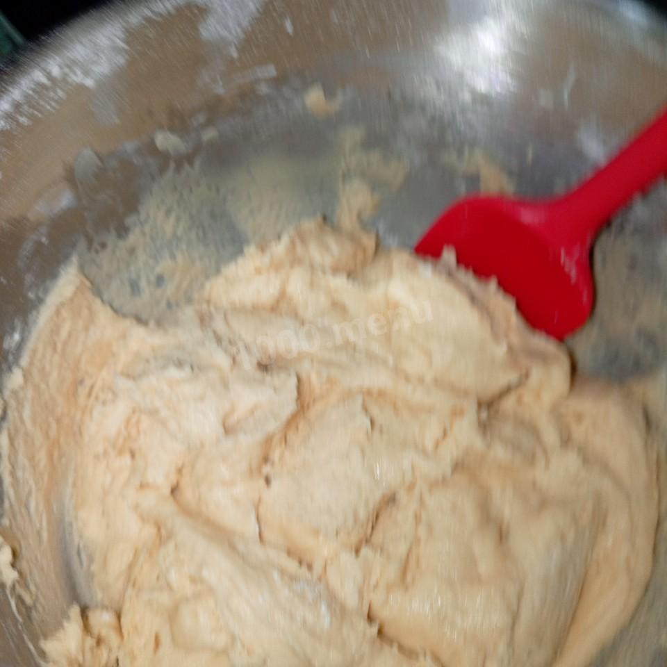 Замешиваем мягкое тесто. Оно должно не много липнуть к рукам. Я его так же сделала миксером но уже использовала насадки для замешивания теста. Отставляем в сторону.