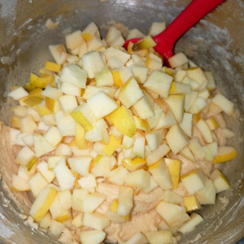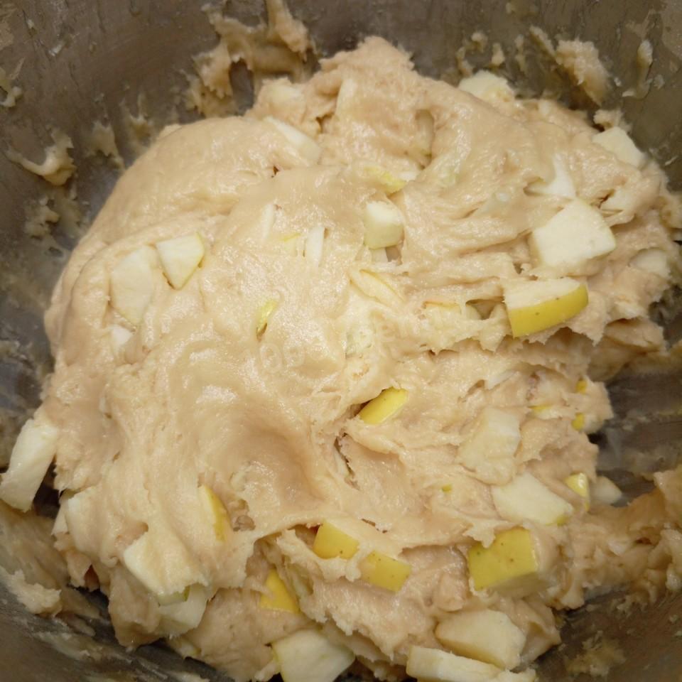 Хорошо перемешиваем тесто вместе с яблоками. Что бы они равномерно распределились по тесту, так будет ну очень вкусно