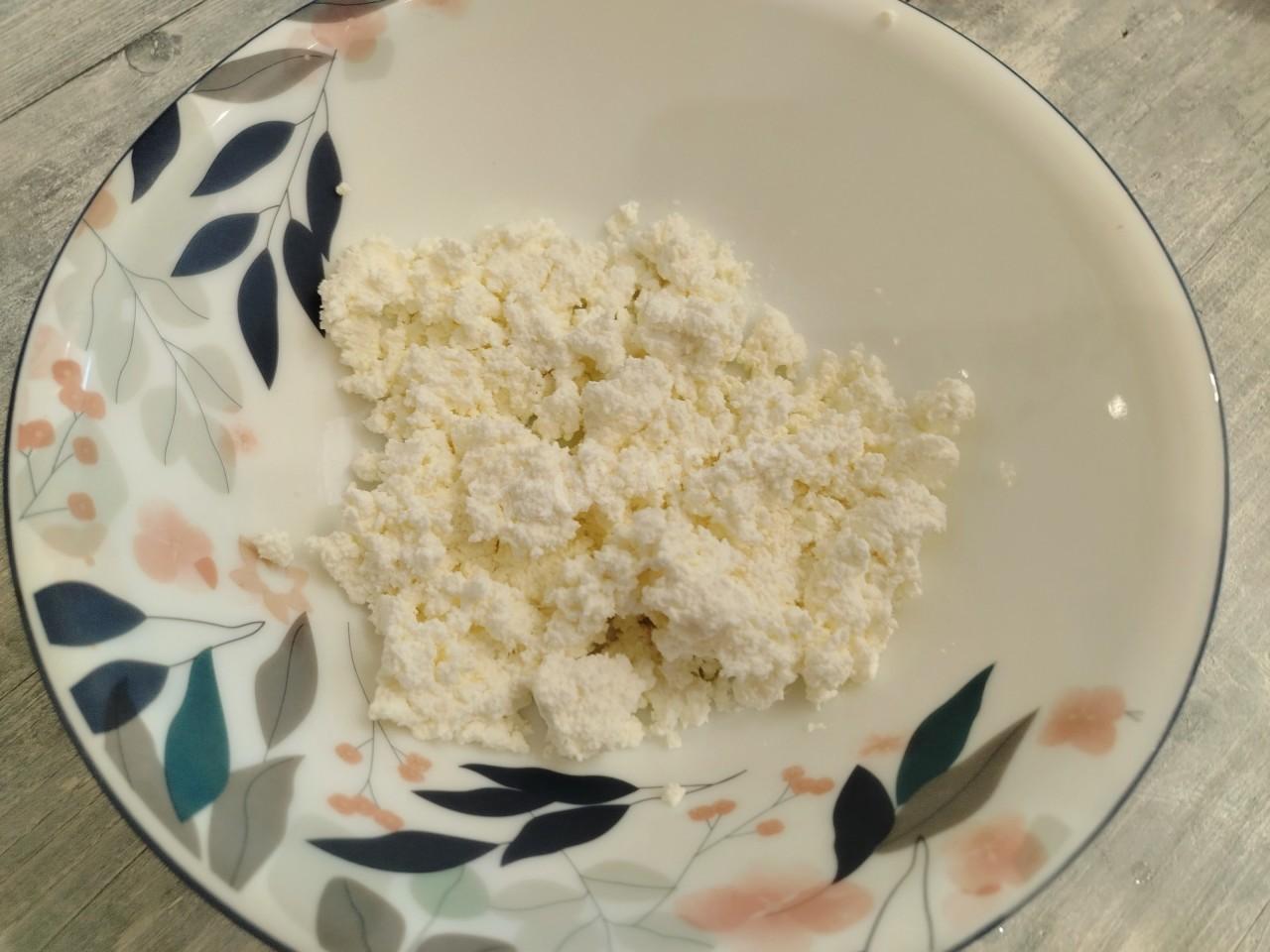 Творог освободите от упаковки, поместите в глубокую миску и разомните вилкой или блендером.