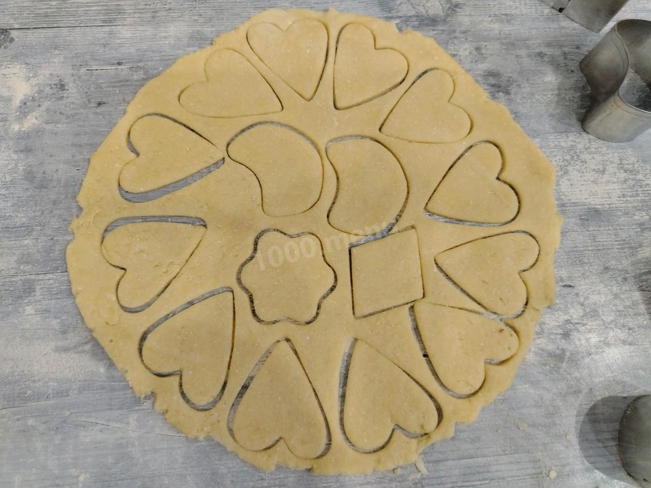 Теперь когда мы раскатали тесто, можно вырезать печенье. Какой формы будет печенье решайте сами. Если у вас есть специальные формочки для печенья используйте их, можно сделать кружочки используя стакан или вырезать ножом квадраты и др.