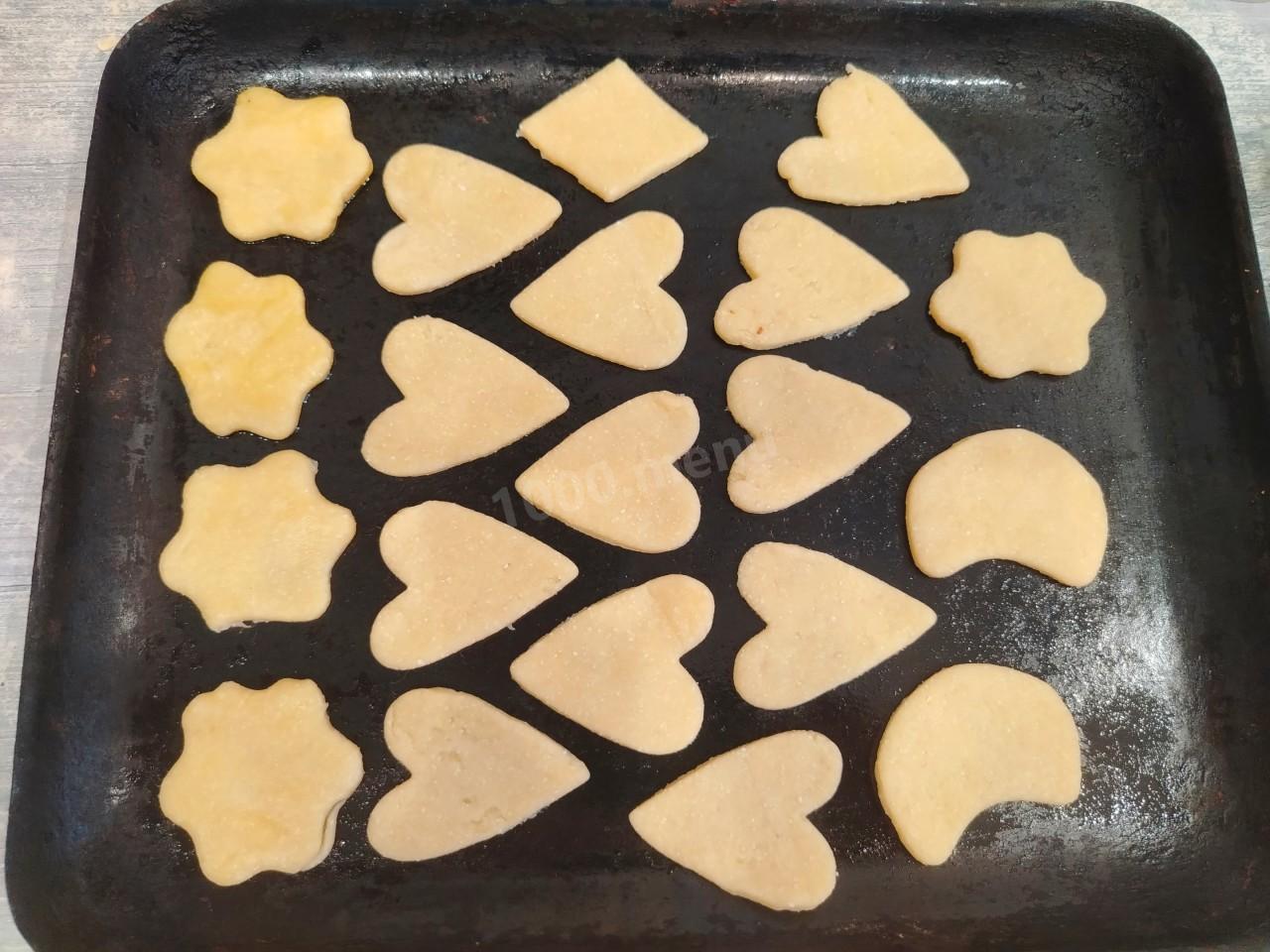 Готовность печенья можно определить по румяной корочке. Печенье готовится очень быстро, не упустите момент. Как только печенье зарумяниться, сразу вынимайте противень из духовки.