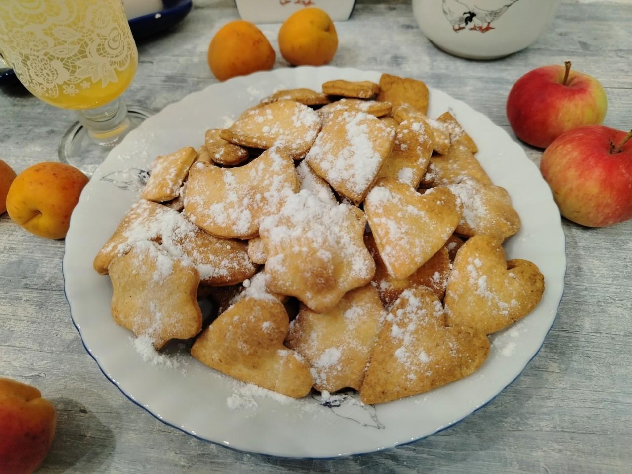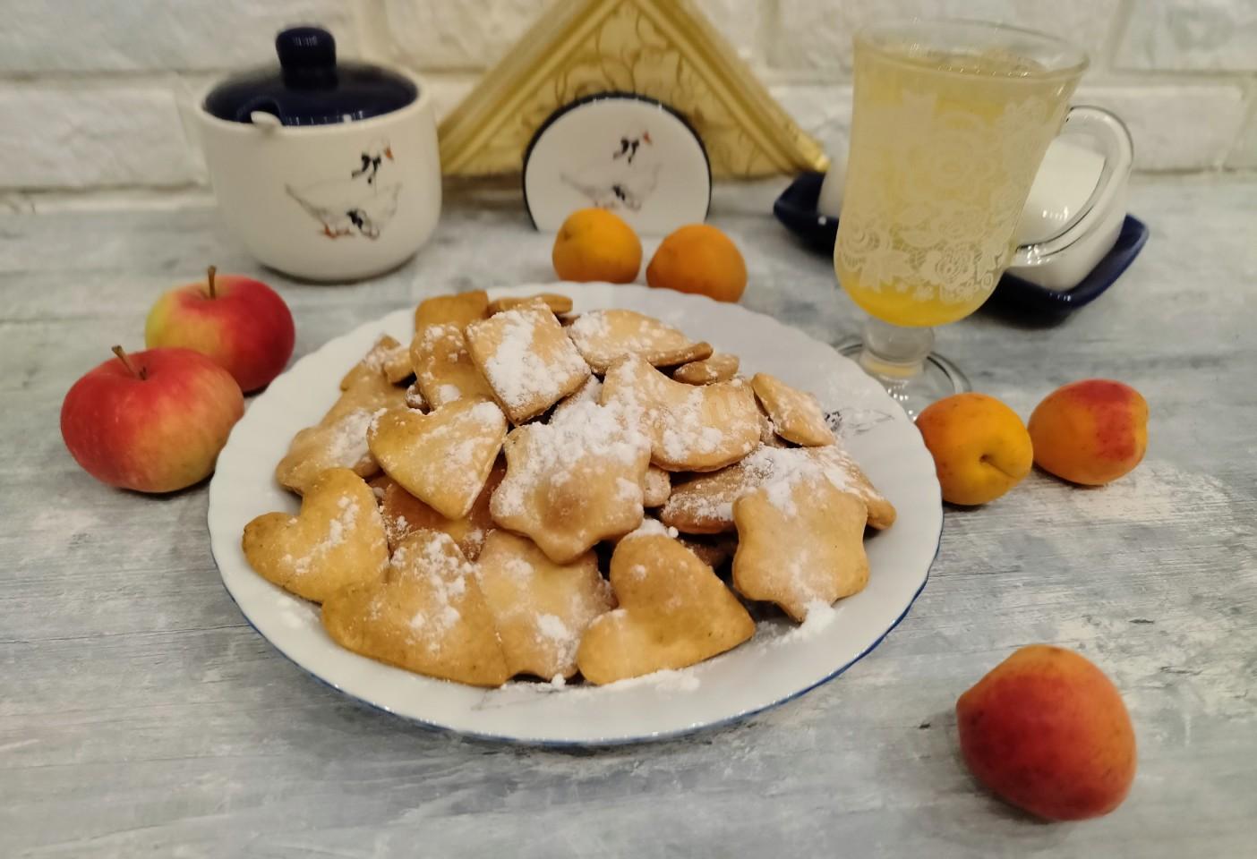 Готовое печенье выньте из духовки и переложите на тарелку, можно посыпать сахарной пудрой. Приготовьте к печенью фруктовый или ягодный компот или травяной чай. Приятного аппетита!
