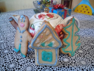 Вера, хорошая порция получается, вся семья наестся, очень понравилось, имбирь способствует улучшению пищеварения и рецепт полезный, и печенье праздничное, красивые формы и деткам в удовольствие такое скушать!