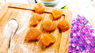 Червячков из трубочек доставать не очень удобно. А вот из формочек мармелад достается на раз-два. Мармеладки получились плотные с ярким абрикосовым вкусом. При комнатной температуре они не начинали подтаивать около 15 минут. И даже после этого мармеладки сохраняли форму и не расползались.