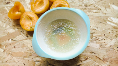 Желатина у меня было только 10 граммов, поэтому приготовила на три порции. Мармелад делала на основе абрикосов.