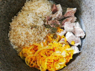 Как сделать плов бухарский в утятнице? Подготовьте необходимые ингредиенты.