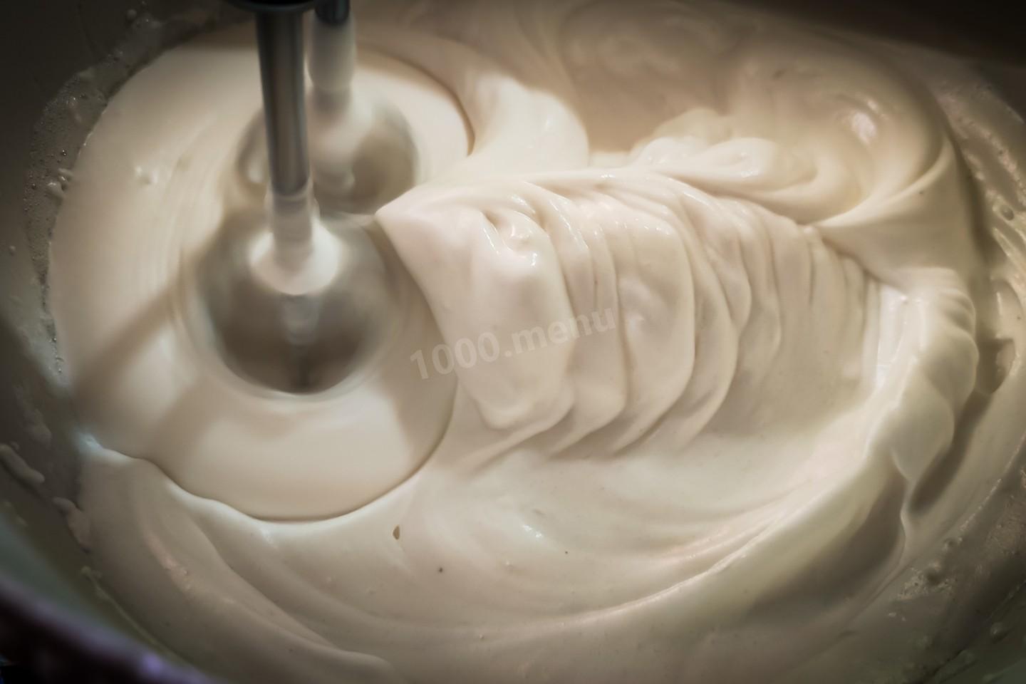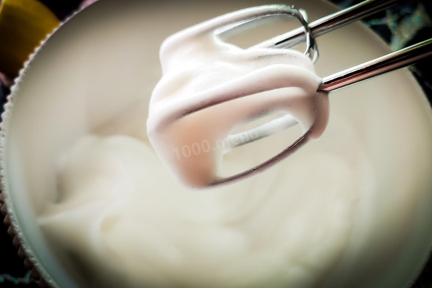 Венчиком или миксером взбить до мягких пиков белки. Так как яйцо было предварительно остужено, то взбиваться белки будут легко и быстро.