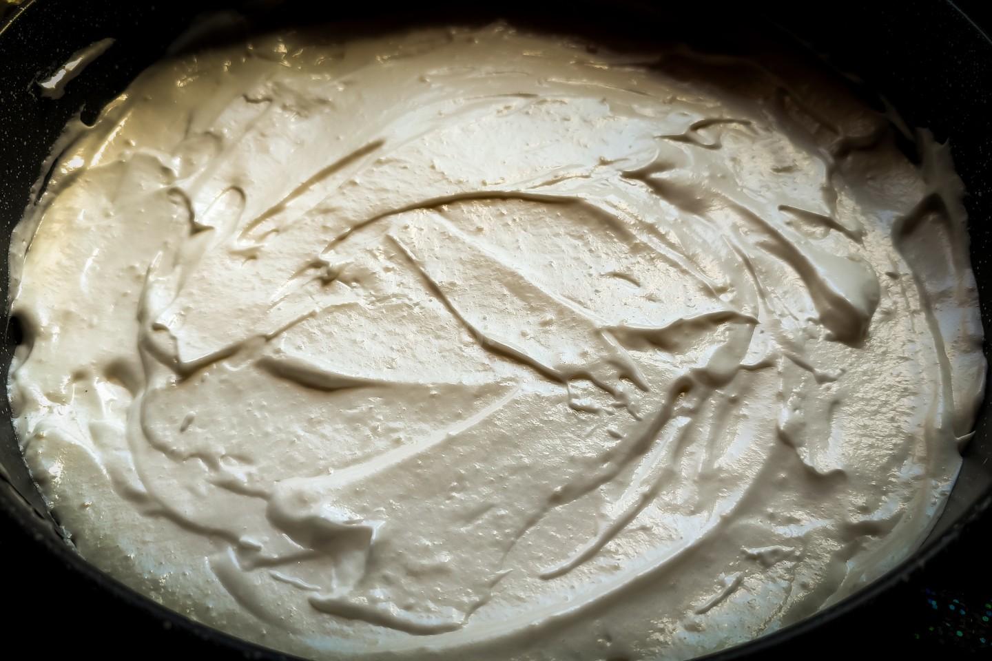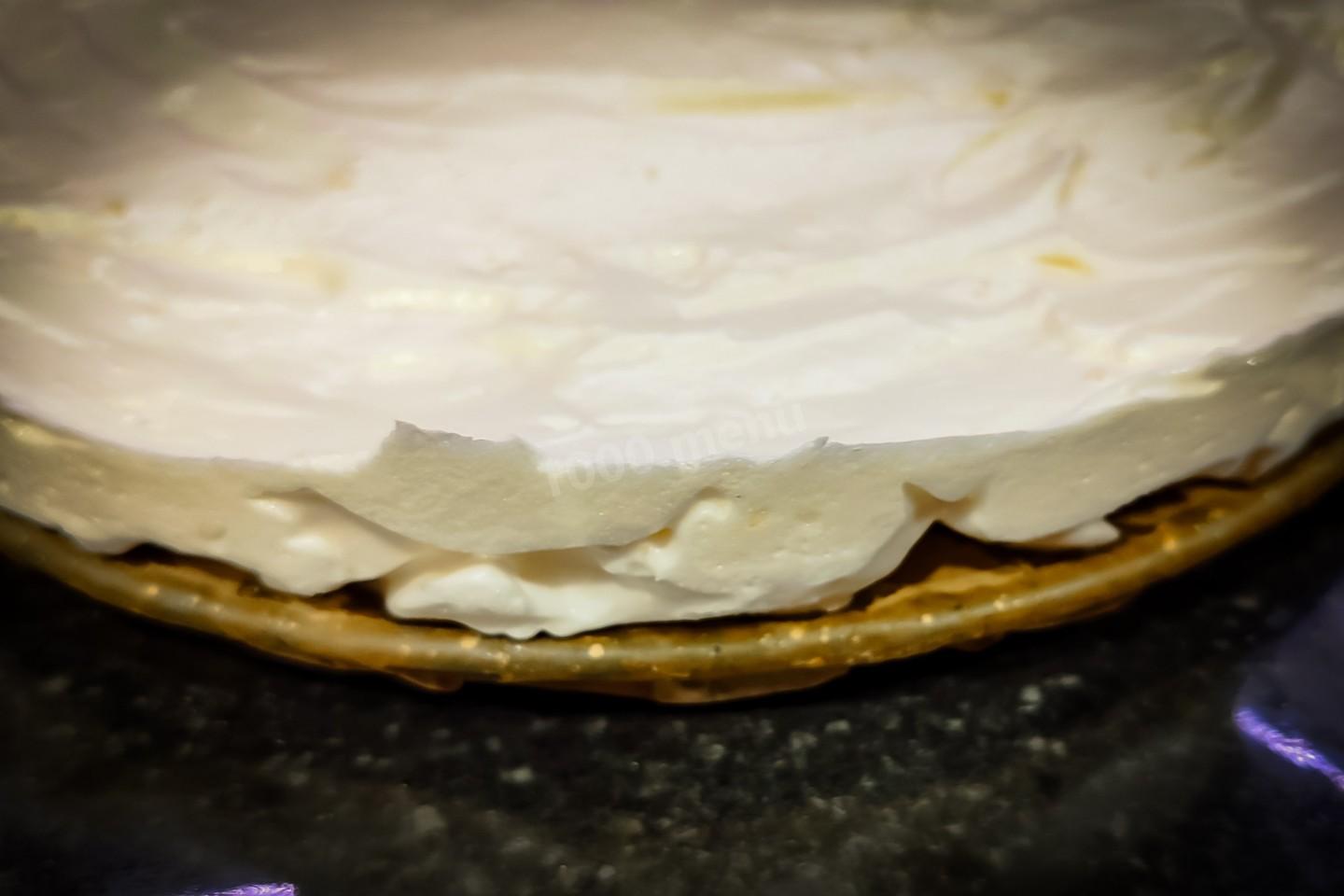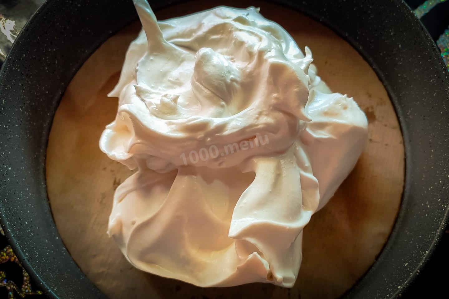 Через 5 минут пышную массу переложить в формочку, в которой дно необходимо выслать пергаментной бумагой или пищевой плёнкой.