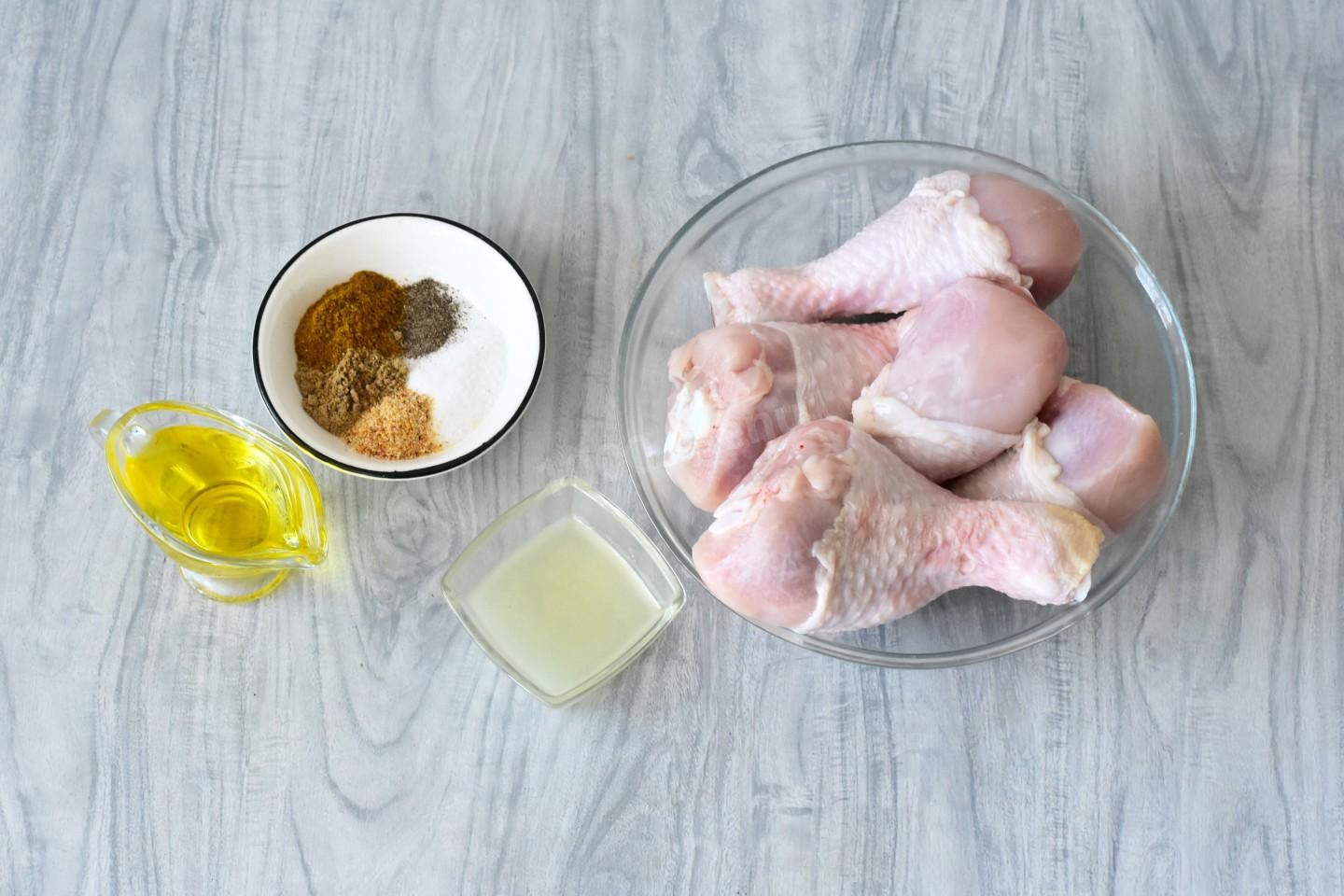 Как запечь хрустящие куриные голени в аэрогриле в лимонно-чесночном маринаде? Для начала подготовьте необходимые ингредиенты по списку. Вместо куриных голеней можете использовать любые другие части курицы: грудки, бедра, окорочка. Но учтите, что время приготовления и калорийность изменятся. Информацию о приготовлении разных частей курицы вы найдете по ссылке в конце рецепта.