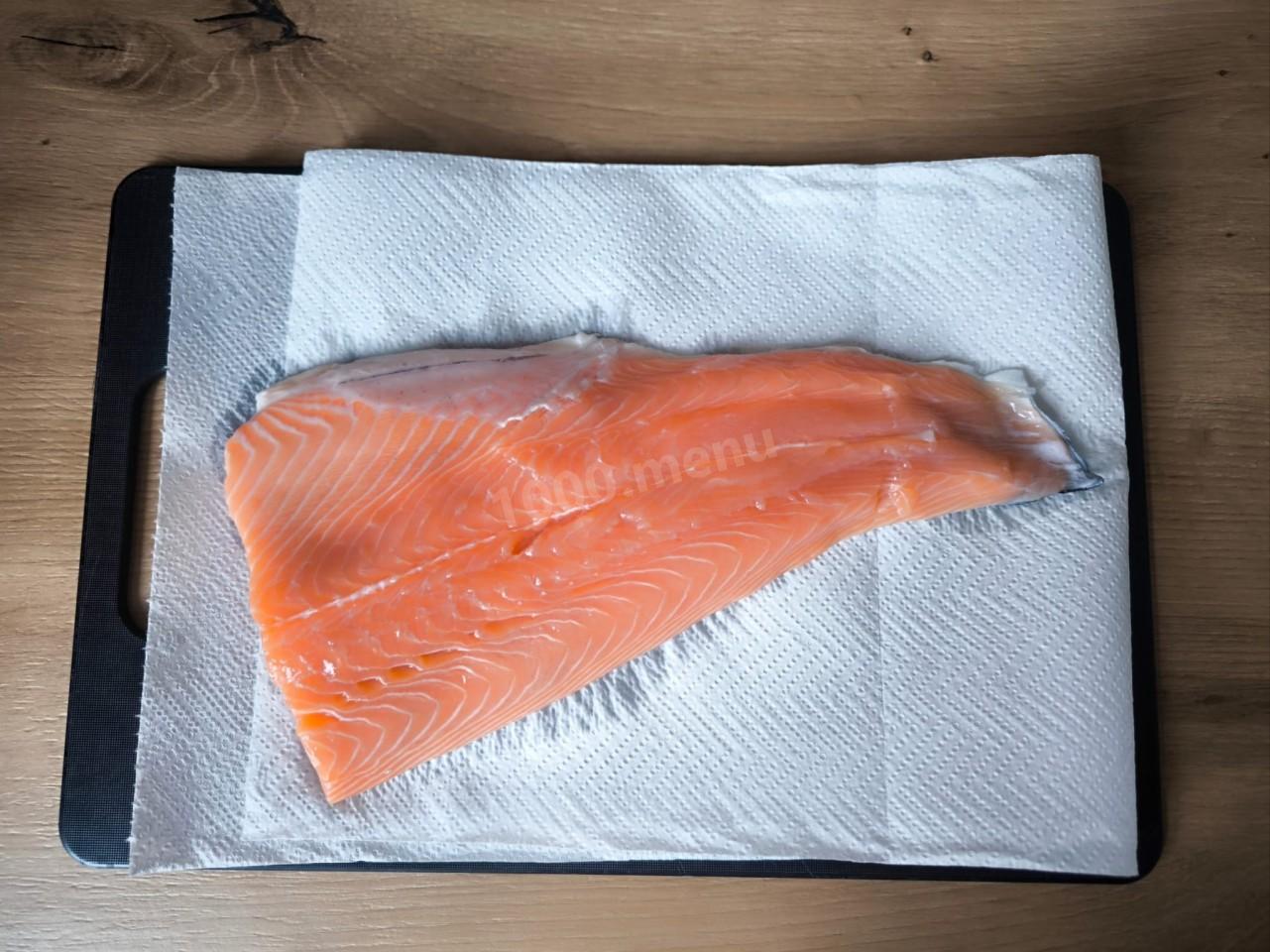 Хорошо промываем рыбу под проточной водой. Промакаем бумажным полотенцем.