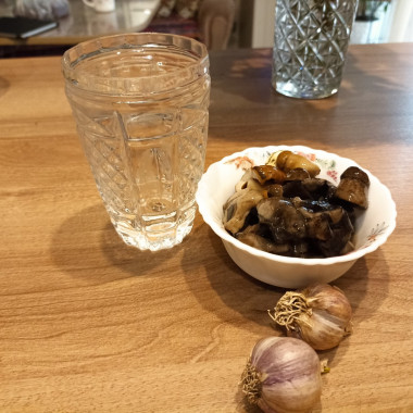 Отзыв 1: Ничего лишнего, все на месте, только стопка самогона и закуска к ней. Огурчики,чеснок и лук вписываются в фото идеально. Кстати, идея положить перья лука на стопку, довольно креативная, за этот шаг дополнительный плюс автору рецепта. Особенно понравился рассол в банке на заднем фоне. Видно, что крепкий, хороший такой. Т.е. на фото сразу продумано все, употребление напитка, закуска и то, что будет на похмелье. По-моему, отлично все получилось.