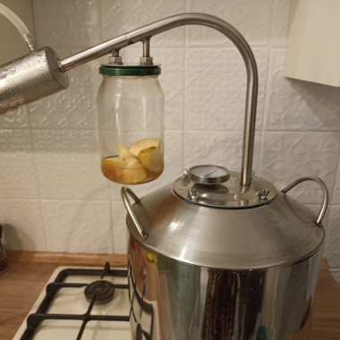 Скажу сразу, всеми процессами приготовления самогона из сахара и дрожжей руководит мой муж, я просто пассивный участник. Поэтому пишу, что вижу. Дрожжи у нас были спиртовые, купленные в специализированном магазине. Муж остался ими очень недоволен, брага у нас стояла 3 недели. Когда самогонный аппарат оказывается на плите, холодную воду подключаем и включаем газ одновременно, не дожидаясь температуры 70 градусов. Собрали самогон от первой перегонки, не отсекаем "головы" и "хвосты". Вторая перегонка - нагреваем самогонный аппарат, пока не начнет капать жидкость, и огонь убавляем до минимума. Отсекаем "головы", крепость напитка в данный момент 85 градусов. Я этот момент пропустила и сфоткала уже меньше, 75. Процесс продолжаем, пока крепость не упадет до 50 градусов. Остальное уходит в "хвосты", до 20 градусов. Мы не выливаем "головы" и "хвосты", "головы" используем в качестве розжига для мангала, а "хвосты" муж собирает в отдельную ёмкость и, когда их накопится побольше, перегоняет снова. Вот такое безотходное производство. Рецепт рабочий, проверено. Большое спасибо автору.