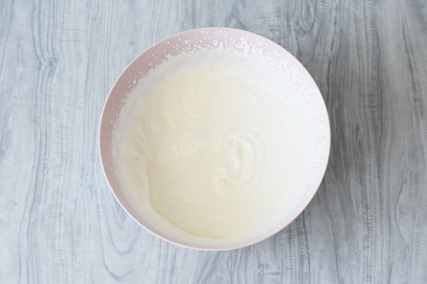 Взбейте сливки миксером до получения пышной воздушной нежной массы. Важно не перебить сливки, иначе они расслоятся и из них отделится масло. В правильно взбитых сливках след от венчика должен оставаться и не затягиваться либо затягиваться очень медленно. О том, как правильно взбивать сливки, читайте в статье под шагами.