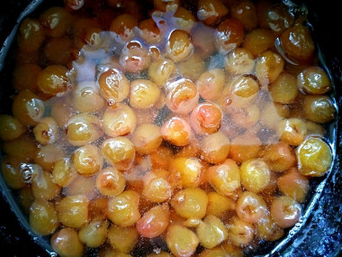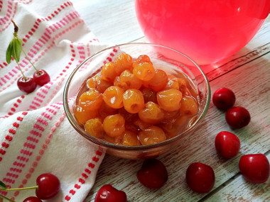Нас угостили жёлтой черешней и когда все уже наелись сырых плодов, я решила сварить варенье из черешни без косточек на зиму. Косточки извлекала при помощи советского приспособления) Пропорции черешни и сахара использовала такие же как и в рецепте, черешня оказалась сладкой. Заметила, что жёлтый сорт совсем не водянистый и сока при настаивании практически не дает. Поэтому почти сразу начала нагревать на малом огне, а там уже и сок появился. Пену снимала ложкой с отверстиями. Через 20 минут сняла с огня, остатки пены при этом практически сразу пропали. Банки с крышками уже были готовы, закрутила варенье и перевернула вверх дном остывать. Из одного килограмма черешни у меня вышло две поллитровые баночки и немного на пробу. Варенье получилось сладким, хорошо, что сахара больше не добавила) А еще ягодки прозрачные и напоминают цукаты. Вкусное варенье, рекомендую!