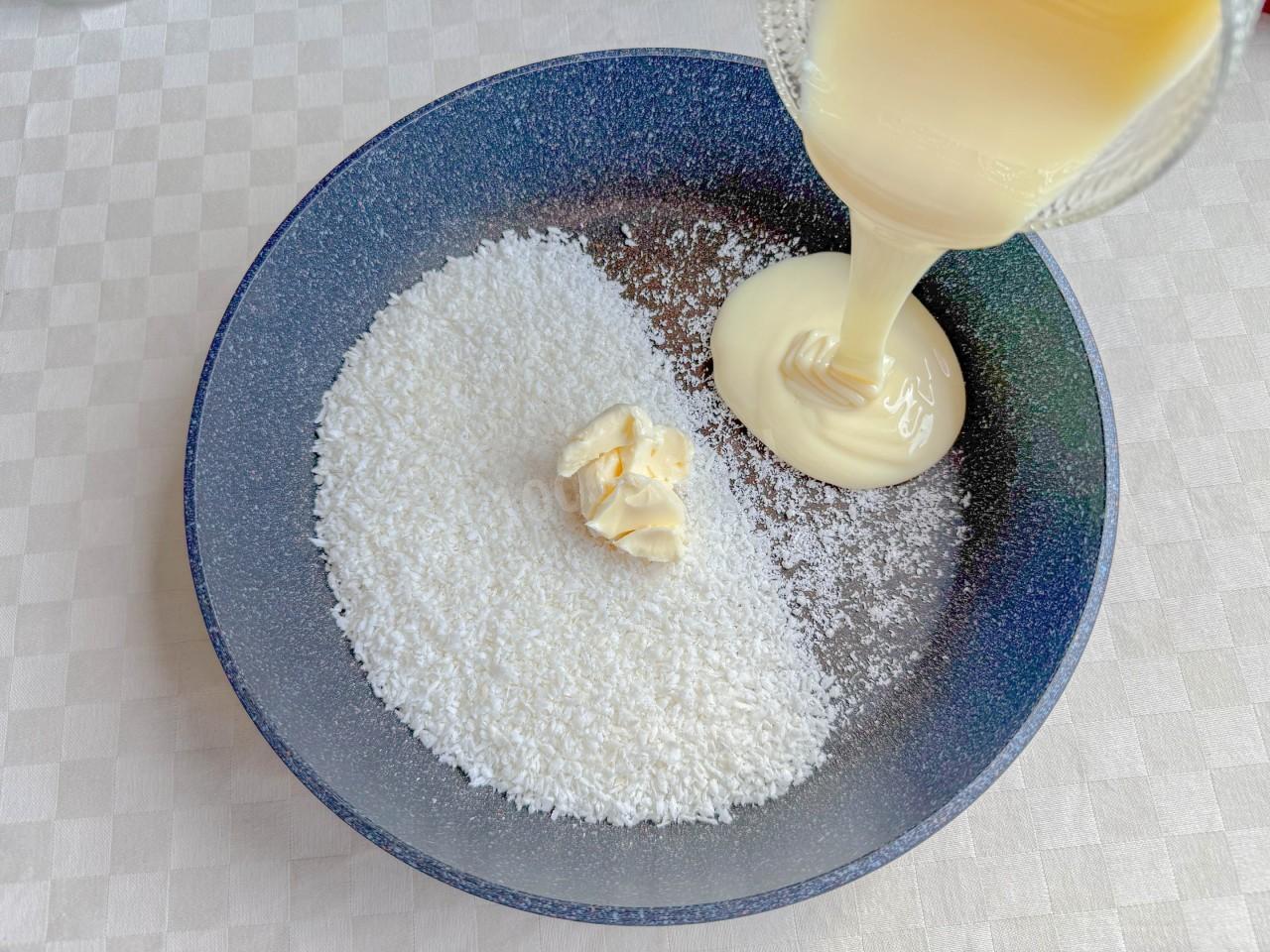 Кокосовую стружку можно заменить свежим тёртым кокосом.