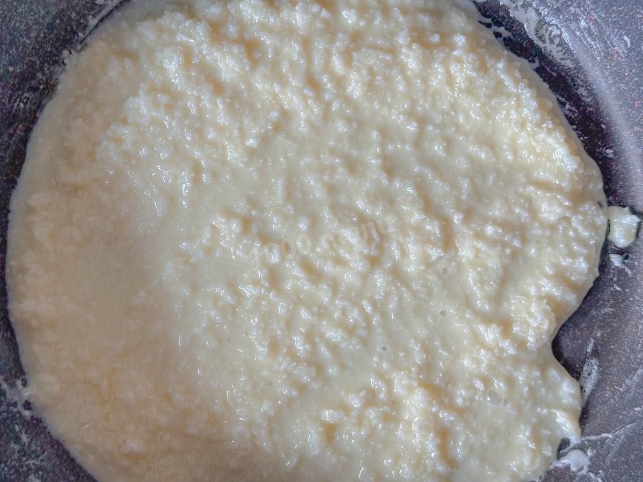 Массу необходимо постоянно мешать, чтобы не пригорала ко дну сковороды и влага равномерно испарялась. У меня ушло 5 минут постоянного вымешивания на медленном огне.