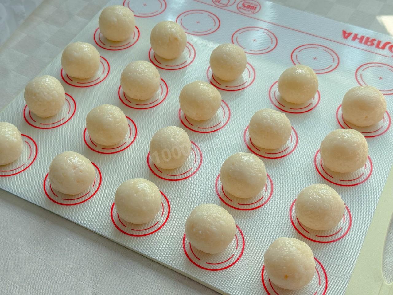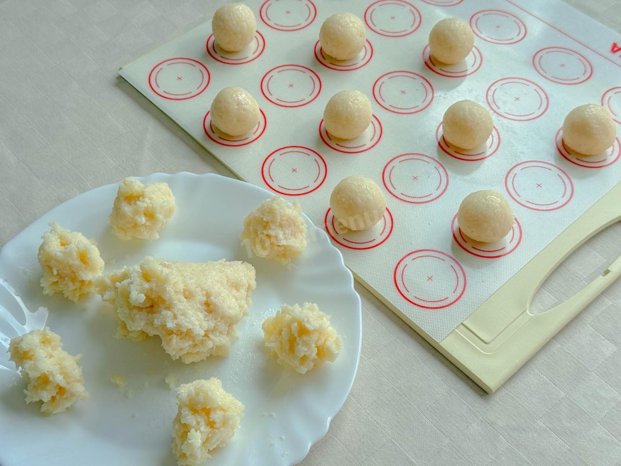 Размер шариков определяйте по вкусу. Я отделяла равномерные кусочки с помощью весов по 15-17 г каждый.