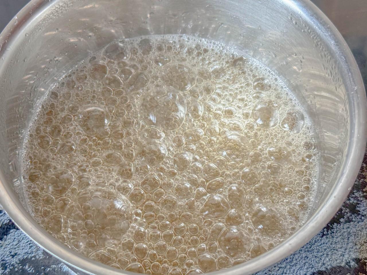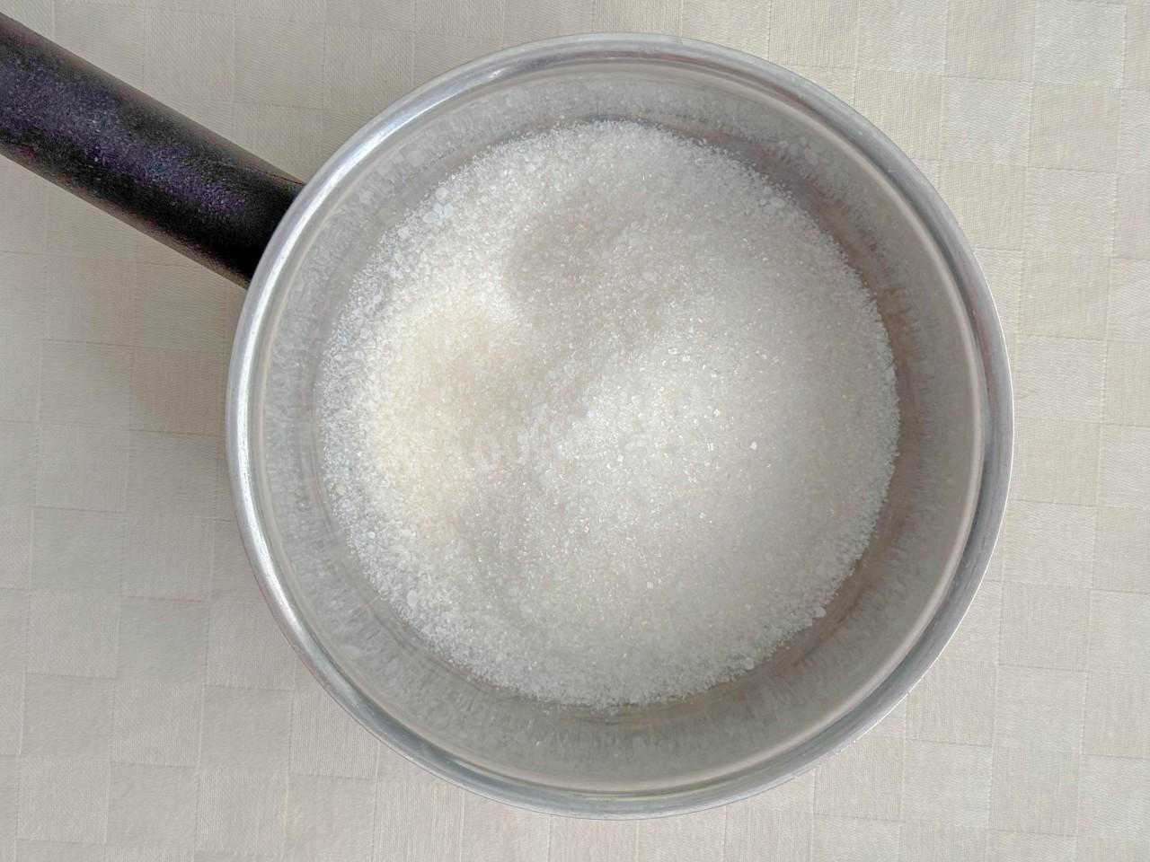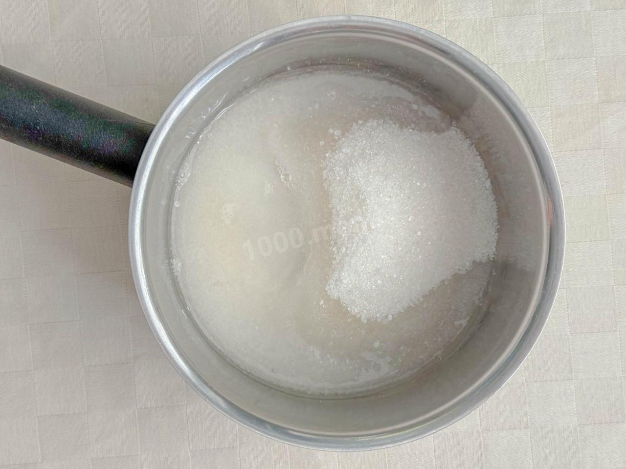 Влейте воду и поставьте на сильный огонь. Не перемешивайте на плите сахар и воду, чтобы не начался процесс кристаллизации.