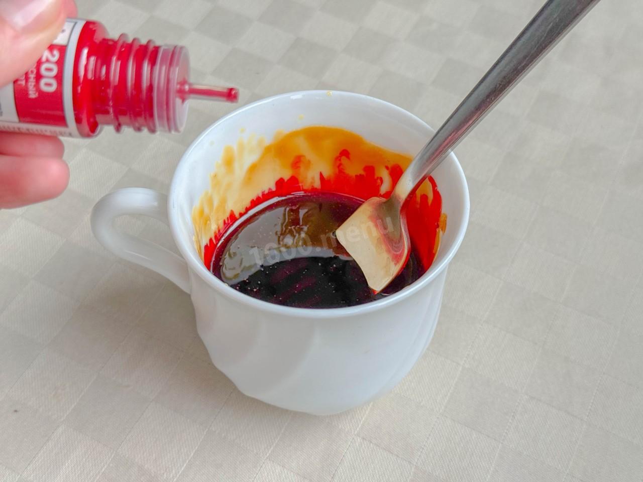 Добавьте краситель в карамель и перемешайте. Можно обойтись без красителя и оставить натуральный янтарный цвет карамели. Краситель можно добавить еще на этапе закипания карамели - это не принципиально.