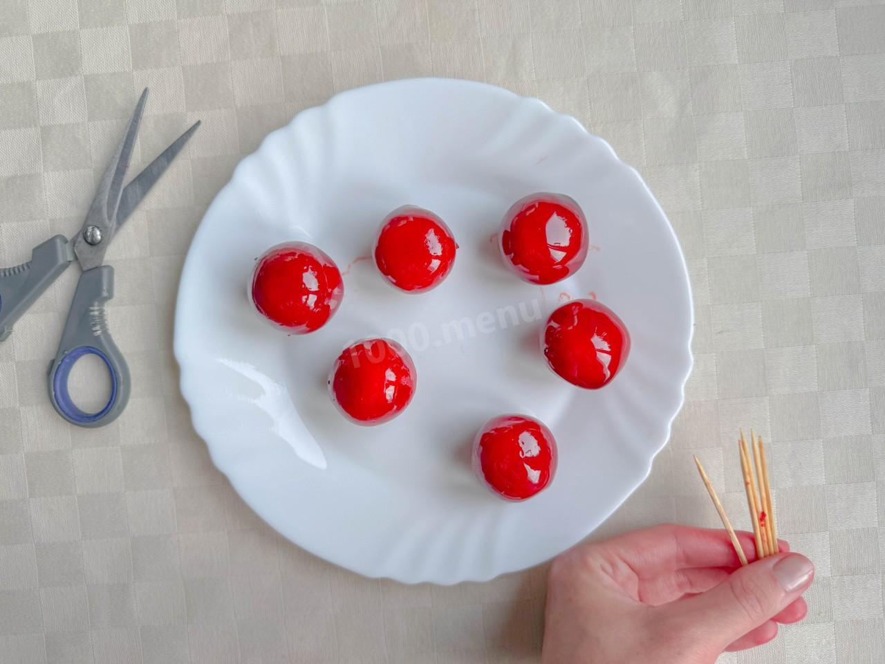 Когда конфетки застынут - отделите их от шпажки с помощью ножниц или щипцов, чтобы не оставить следы на глянцевой поверхности.