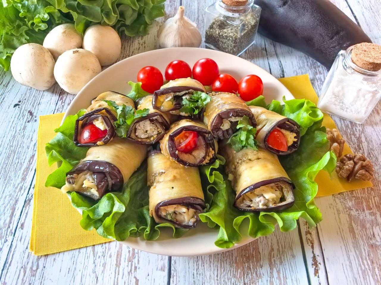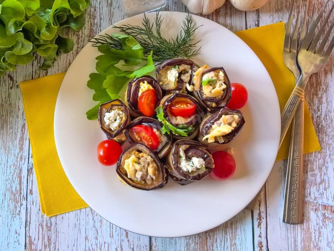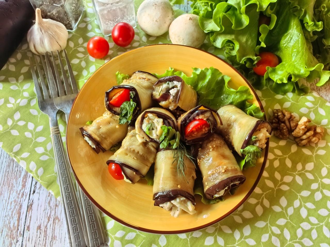 Рулетики из баклажанов с грибной начинкой получились как в столовой СССР – вкусно и дёшево!