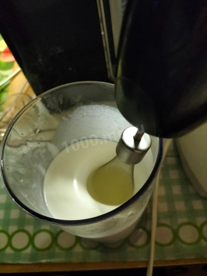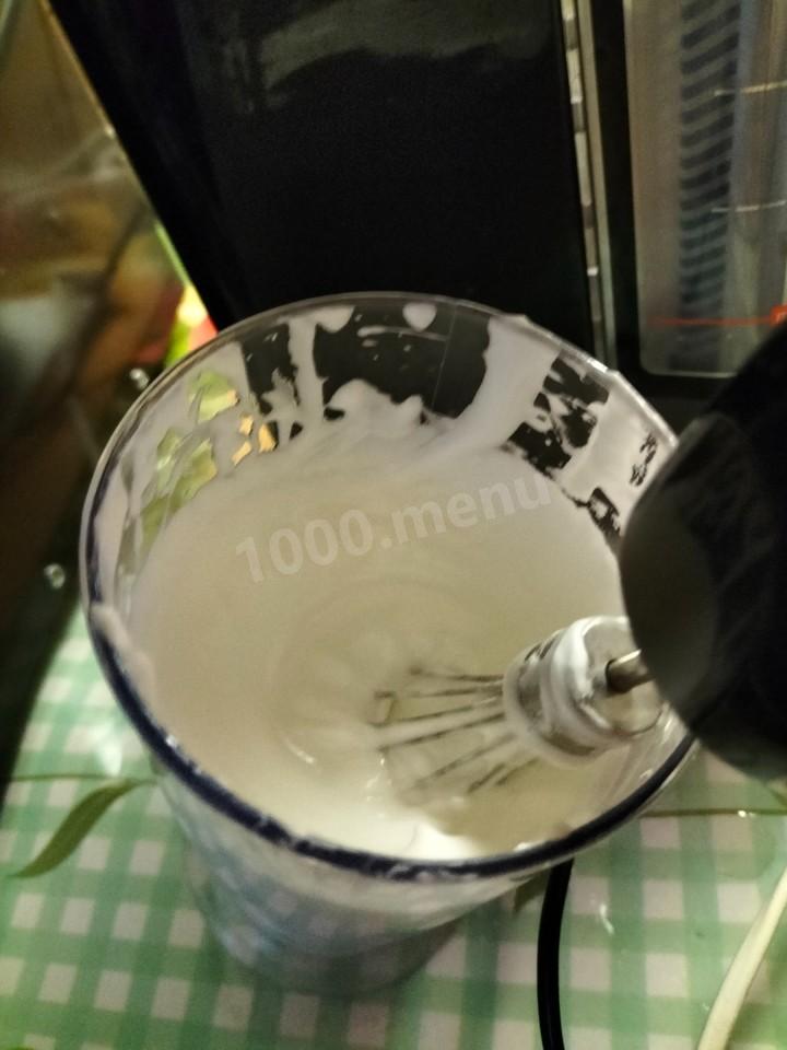 Разделите яйца на белки и желтки. Белки влейте в высокий стакан для взбивания, а желтки уберите в сторону. Высыпьте в белки 50 грамм сахара и взбейте миксером до образования пышной пены и крепких пиков.