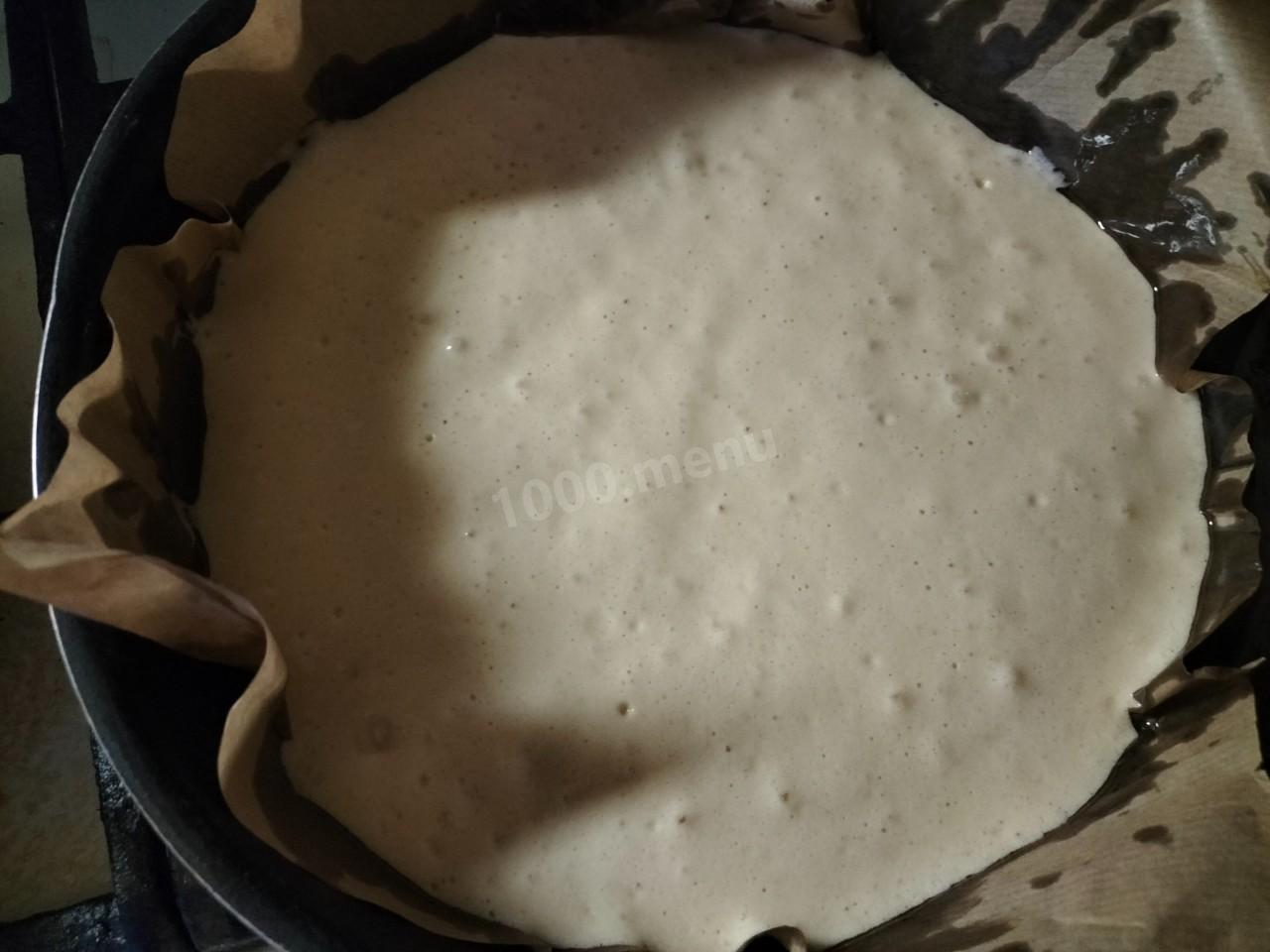 Форму для выпечки застелите пергаментной бумагой. Залейте её половиной теста и выпекайте 10 минут при температуре 200°.