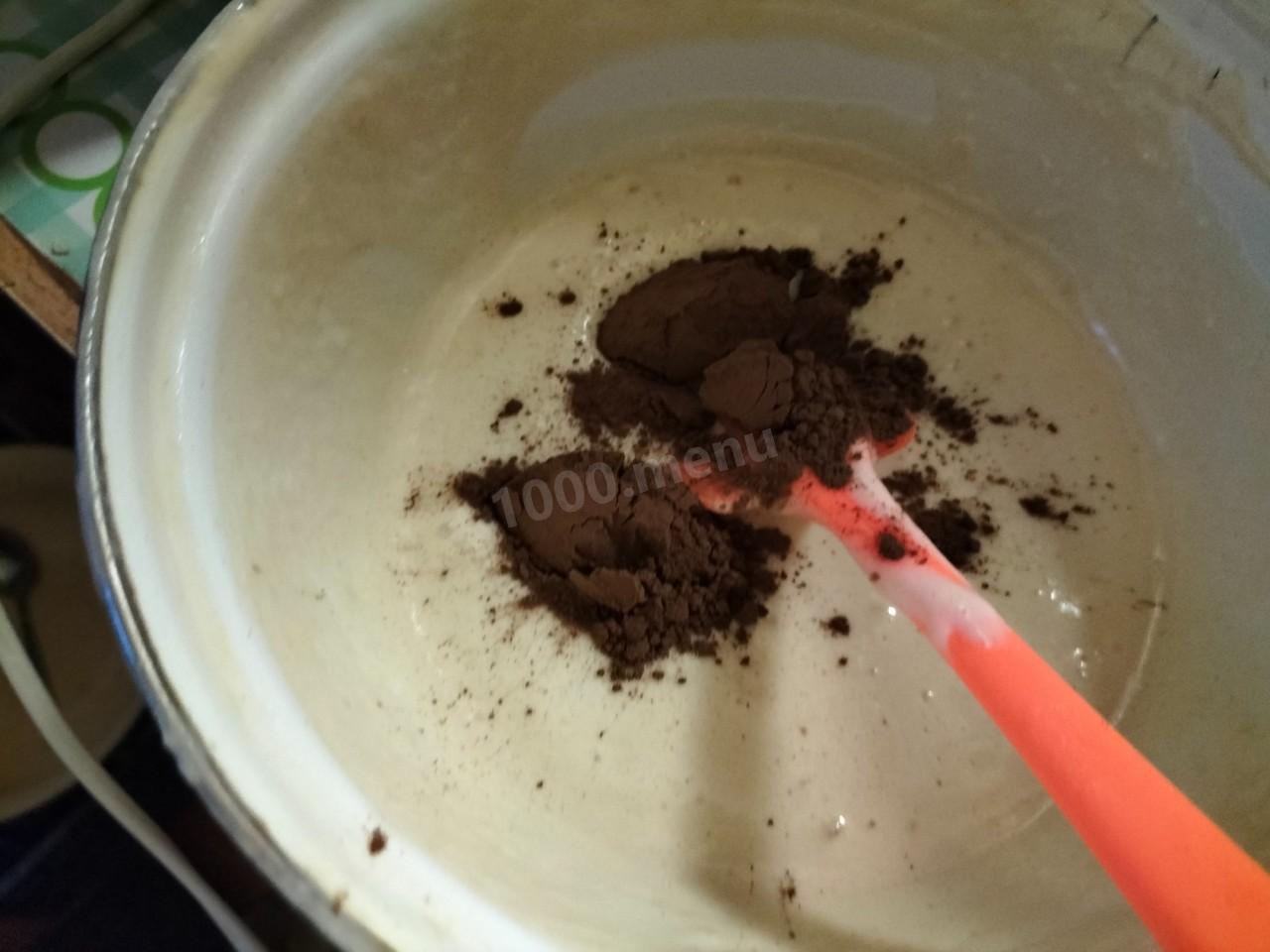 В оставшееся тесто добавьте какао. Хорошо перемешайте.