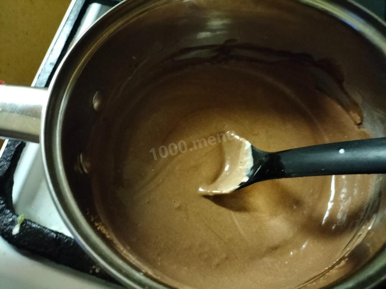 А теперь перейдем к глазури. В сотейнике смешайте сметану, какао и сахар. Варите, помешивая, 5 минут и доведите до кипения. Готовую глазурь остудите.