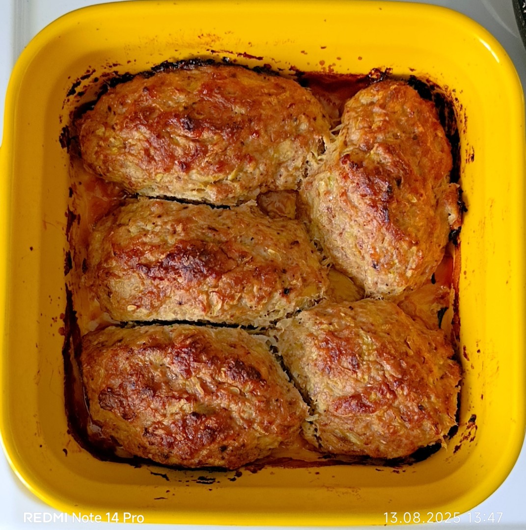 Котлеты из кабачков с фаршем, запеченные в духовке готовы. Приятного аппетита!