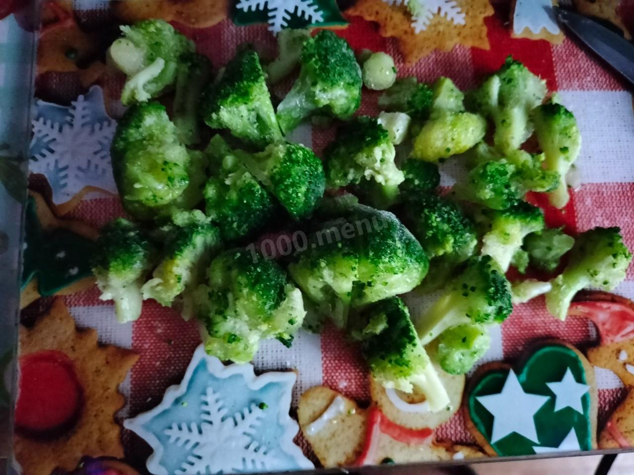 Средние соцветия брокколи разделите на четвертинки (у меня замороженное).