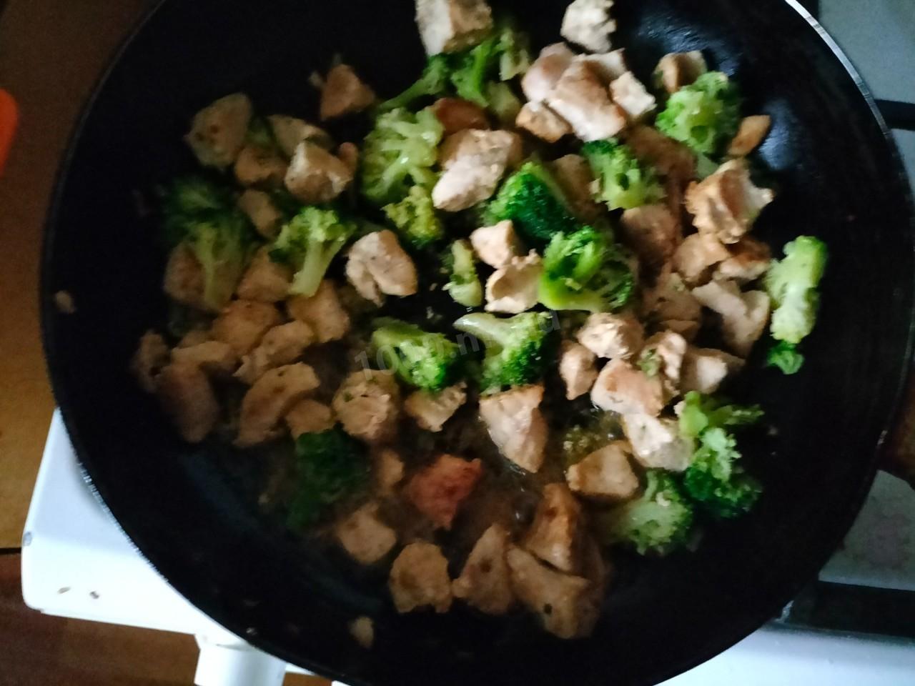 Высепите брокколи к мясу. Жарте 10 минут до мягкости.