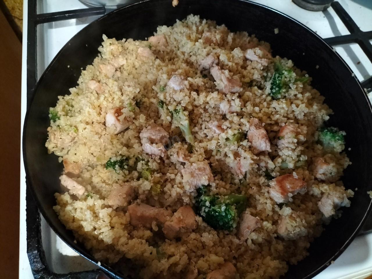 После добавьте булгур с киноа и жарьте ещё 10 минут.