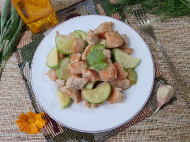 Кабачки получились слегка хрустящими как я и хотела. Мне курица с кабачками очень понравилась. Ее можно подать с гарниром, а можно как самостоятельное блюдо.