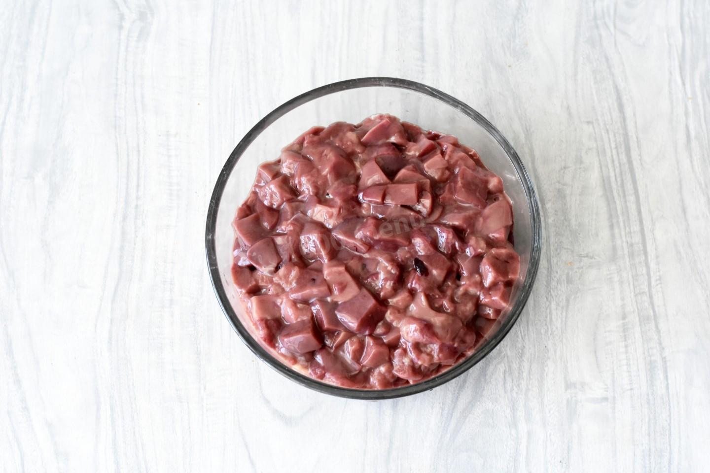 Печень тщательно промойте, пока вода не станет чистой, удалите жировые прослойки, остатки желчи. Неудаленная желчь придаст печенке горечь. Нарежьте печенку мелкими кусочками. Секреты приготовления вкусных блюд из печени вы найдете по ссылке в конце рецепта.
