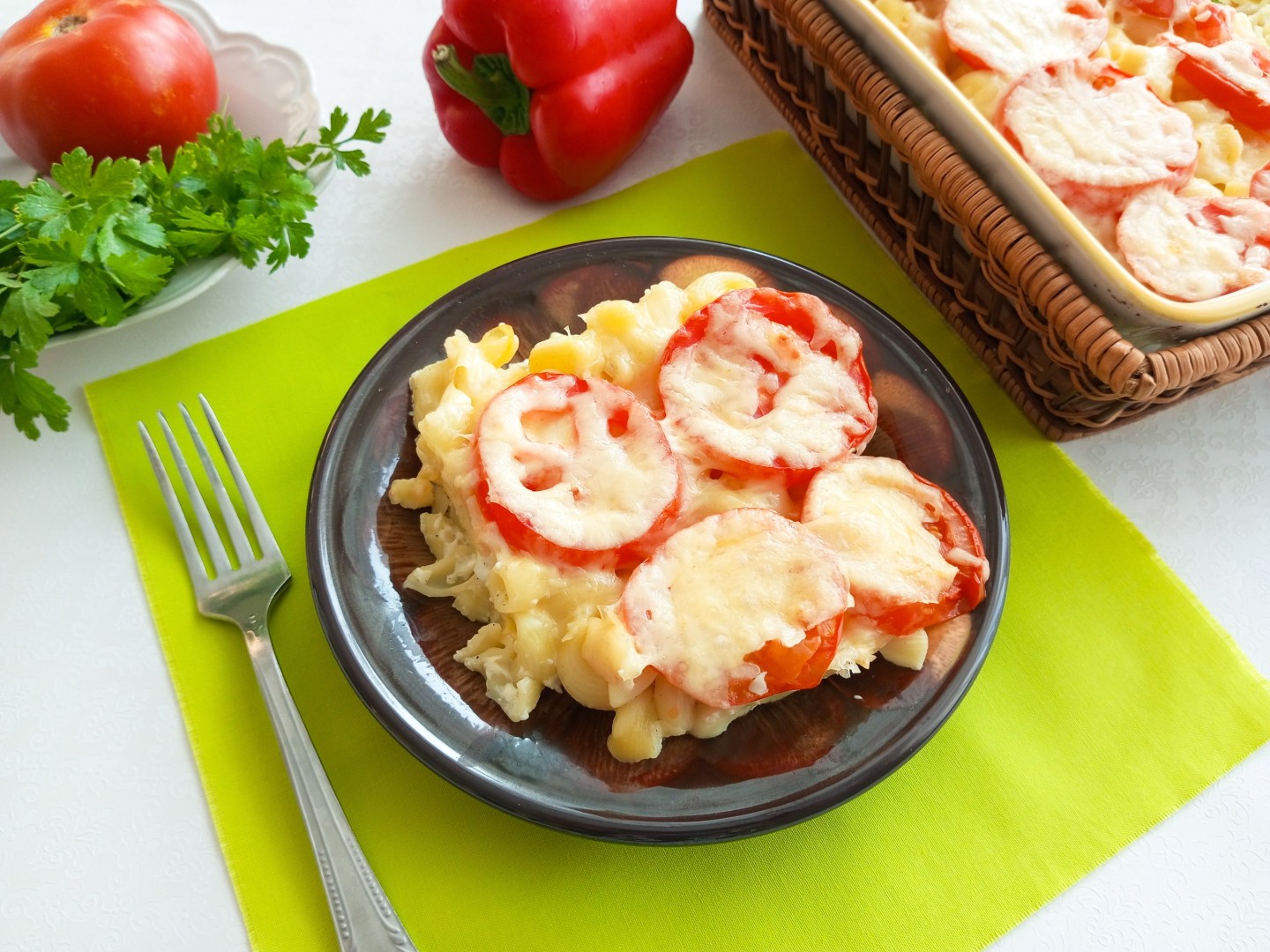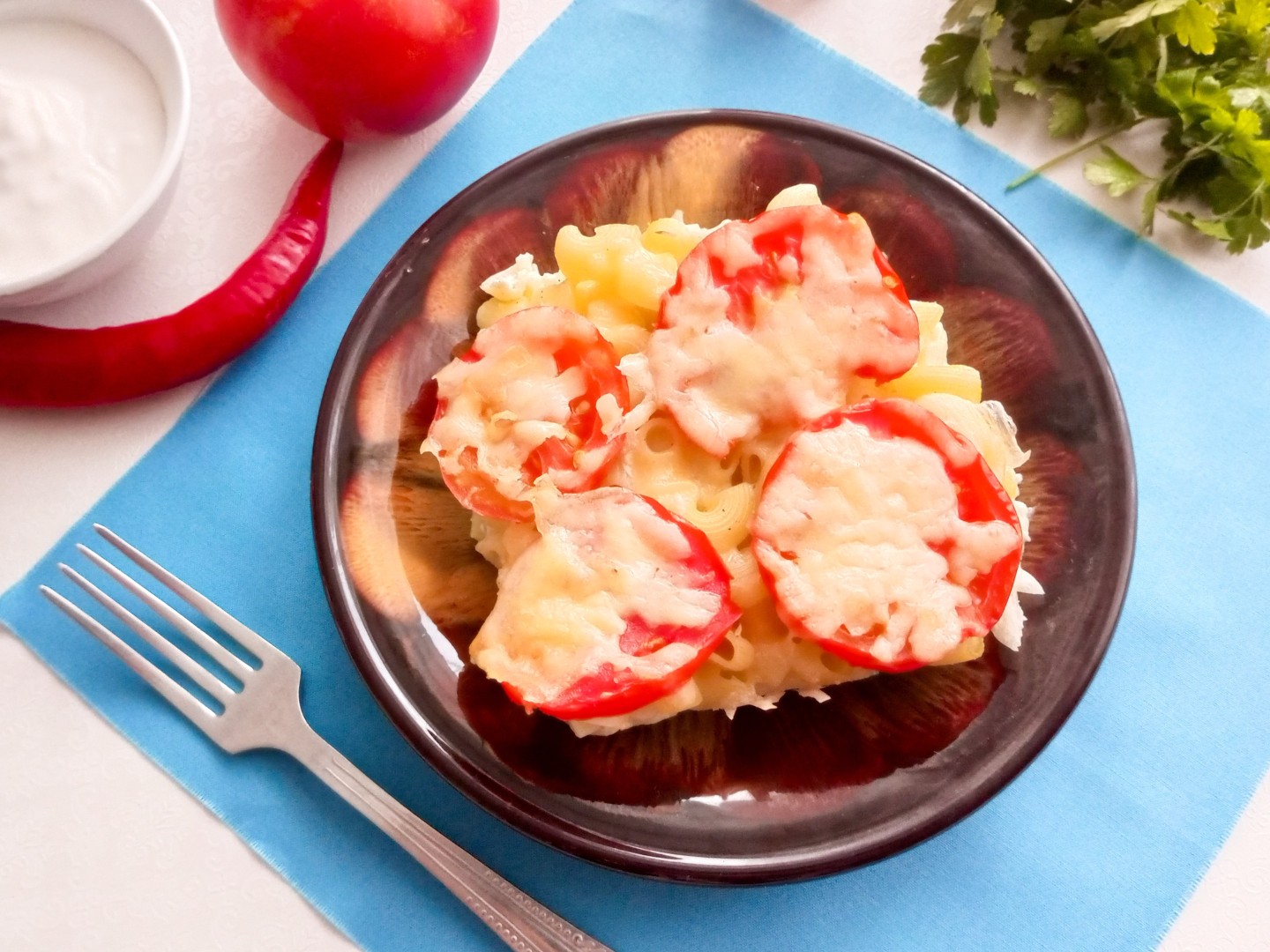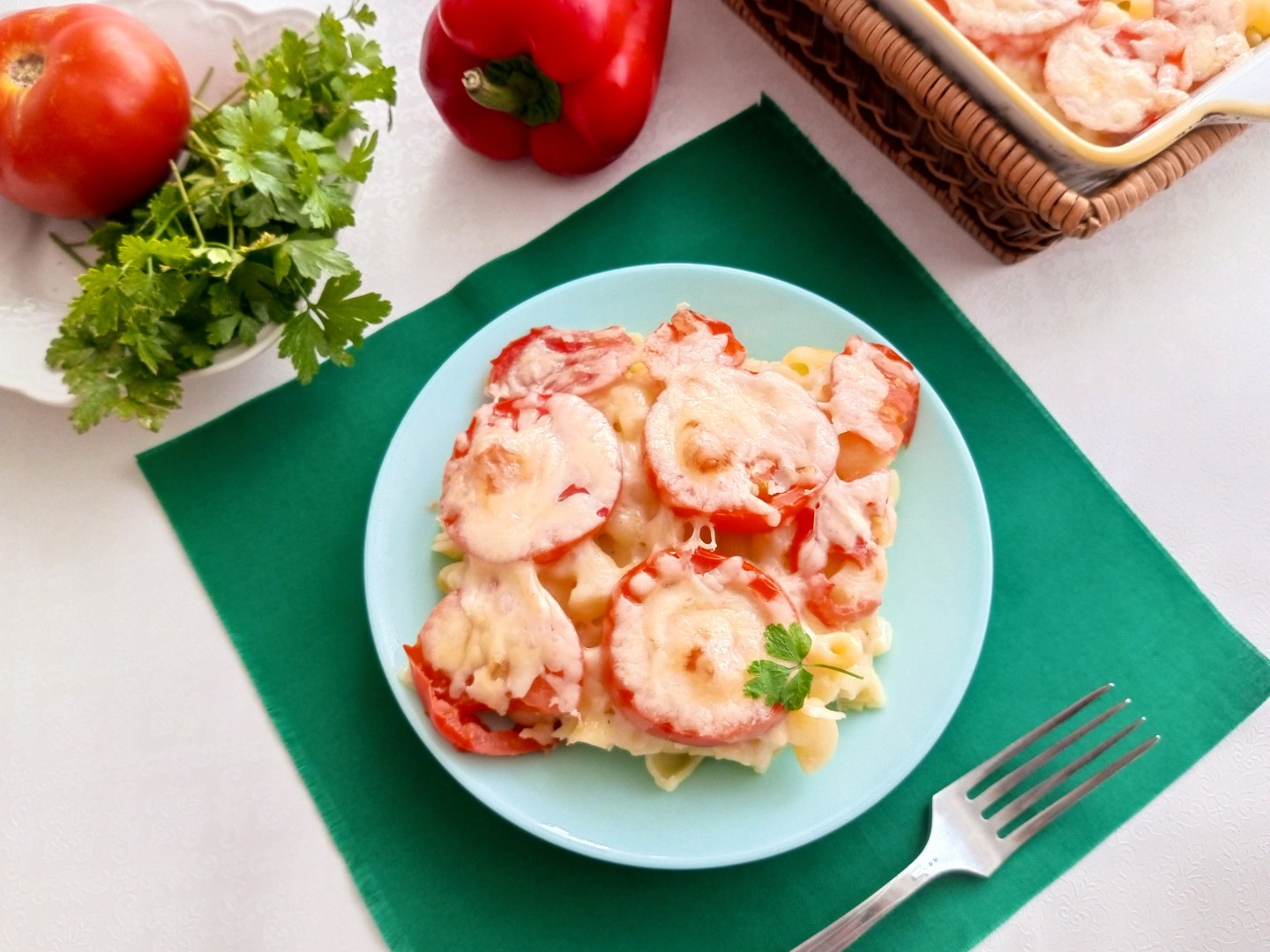 Макаронная запеканка с помидорами — блюдо европейской кухни, ставшее особенно популярным в советских столовых.