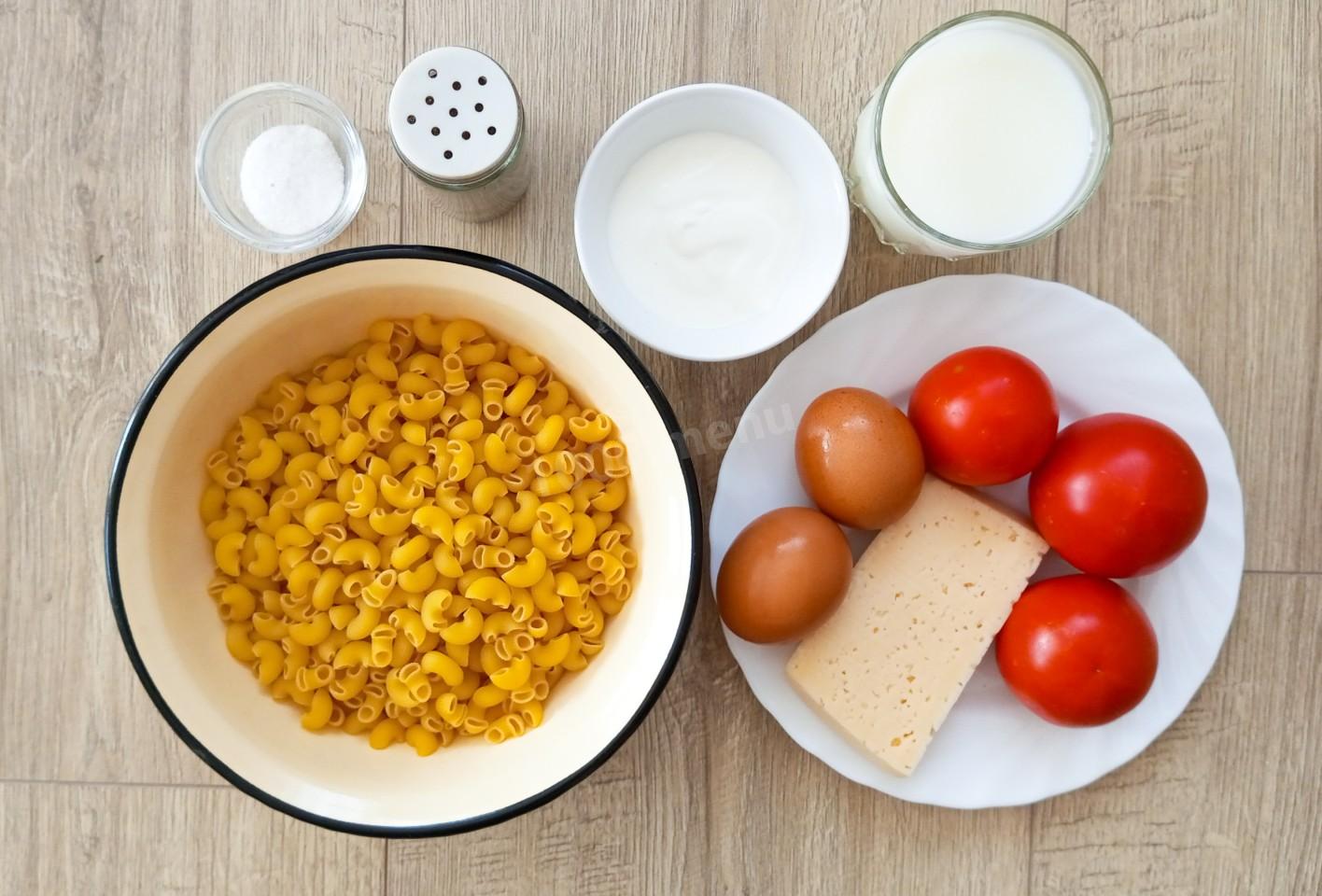 Как приготовить запеканку с макаронами и помидорами? Очень просто. Для начала подготовьте необходимые ингредиенты. Какие макароны подходят для запеканки? Макароны лучше брать из твёрдых сортов пшеницы, они полезнее и не развариваются. С выбором поможет статья по ссылке в конце рецепта. Сыр можно использовать как твердых, так и полутвердых сортов. Главное, чтобы он был хорошего качества и хорошо плавился. Включите духовку на 180 градусов.