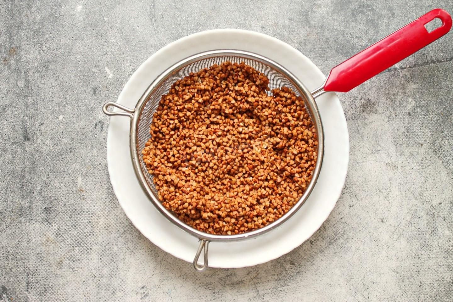 Гречневую крупу хорошо промойте в теплой воде и откиньте на сито, чтобы вода стекла. Все секреты ее приготовления можно прочитать в статье под рецептом ниже.