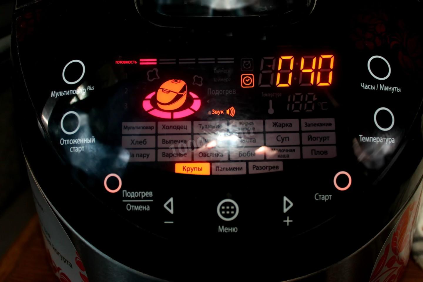 Установите чашу с гречкой в мультиварку и закройте крышку. Установите режим "Крупа". Сколько варить гречку на воде в мультиварке? Время выставите 40 минут. Название режима у вас может быть другое, ориентируйтесь по инструкции к вашему прибору. Точное время будет зависеть от особенностей работы вашей мультиварки. Подробнее об этом читайте в конце рецепта.