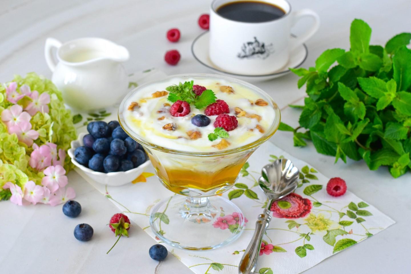 ✔ Мёд в сочетании с йогуртом улучшает пищеварение.