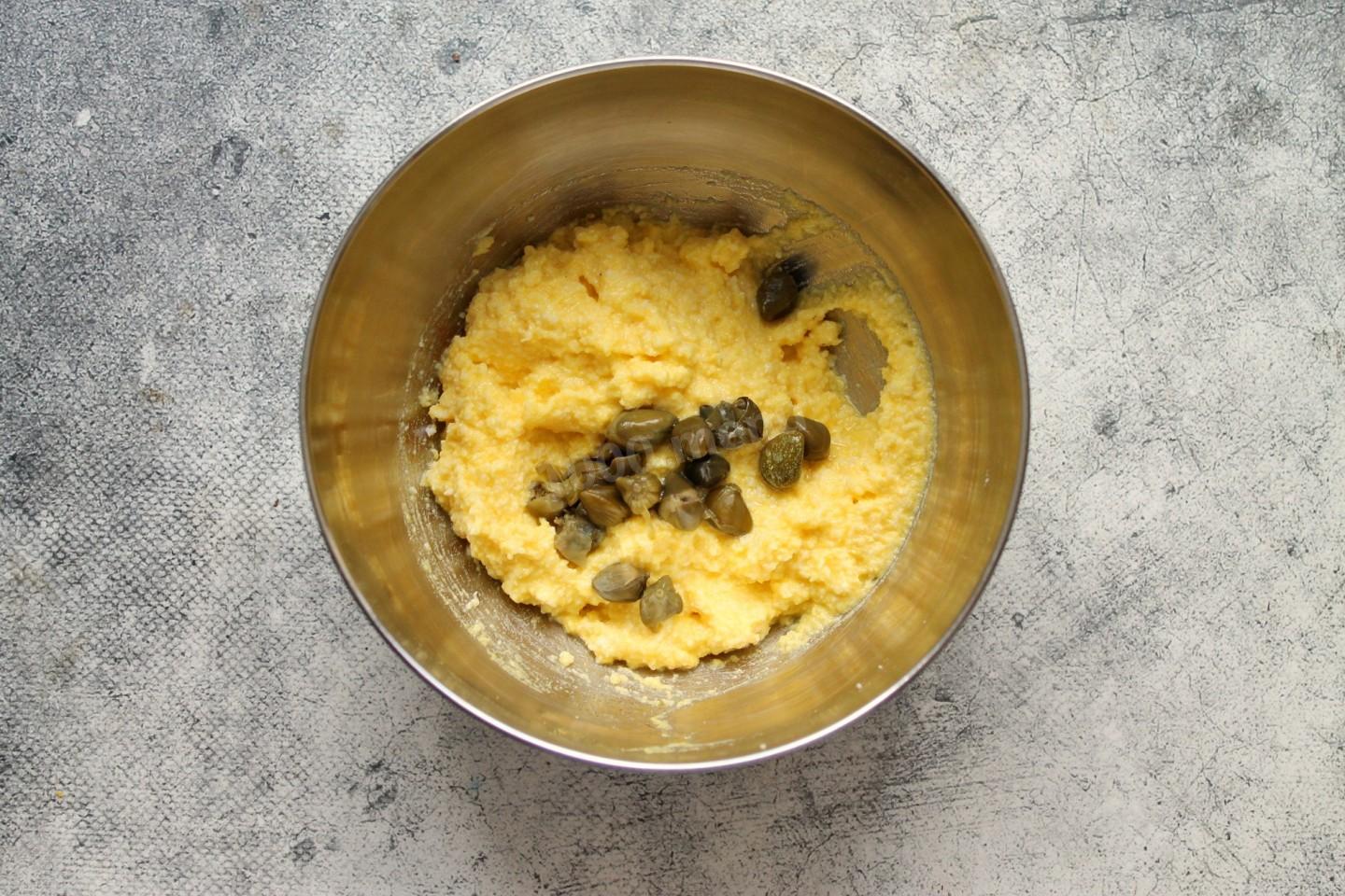 Каперсы выньте из рассола. В готовый соус положите каперсы и аккуратно перемешайте. Каперсов можно положить больше или меньше, а при желании порезать мельче, чтобы они равномерно распределились по всему соусу.