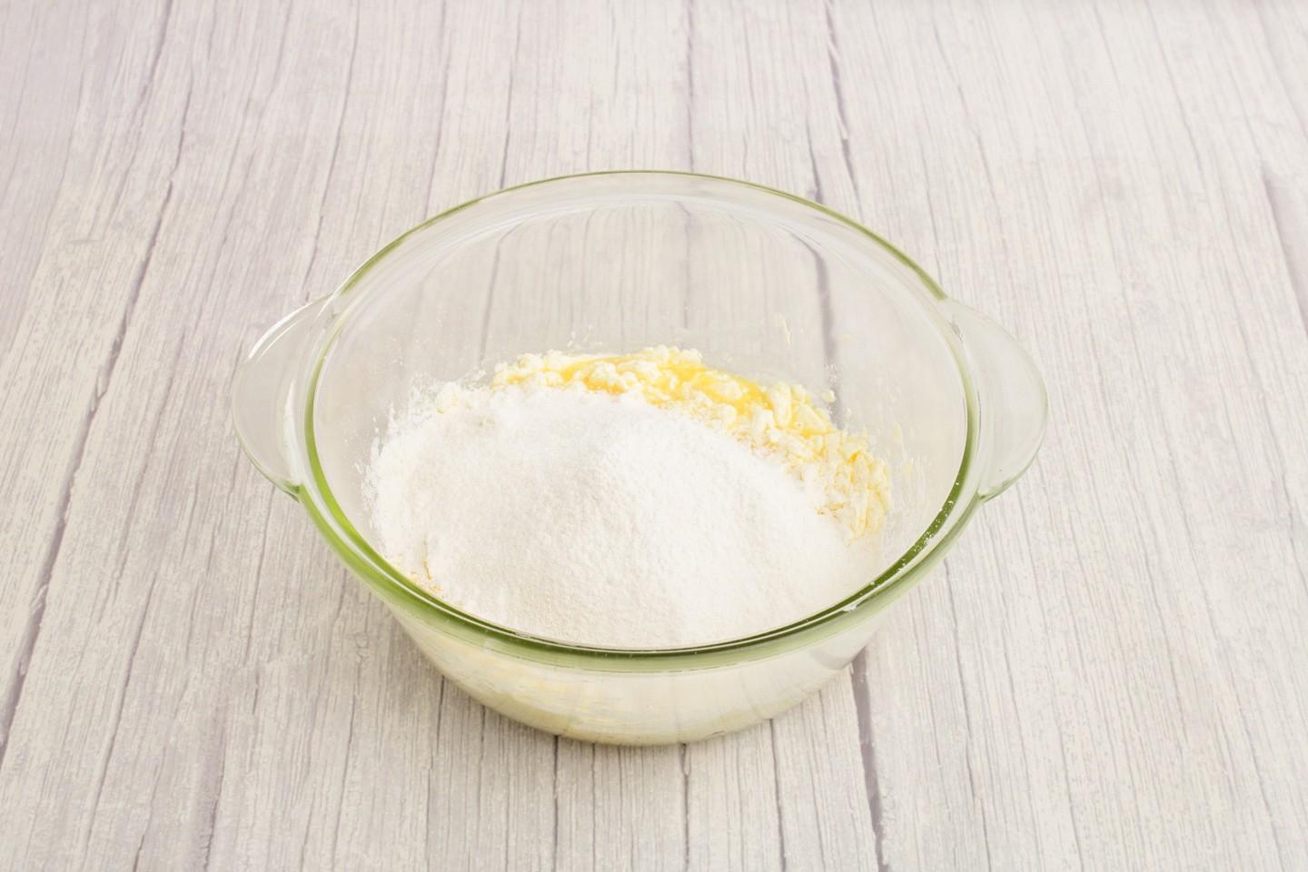 В миске перетрите мягкое сливочное масло с сахаром и ванильным сахаром. Можно воспользоваться венчиком.