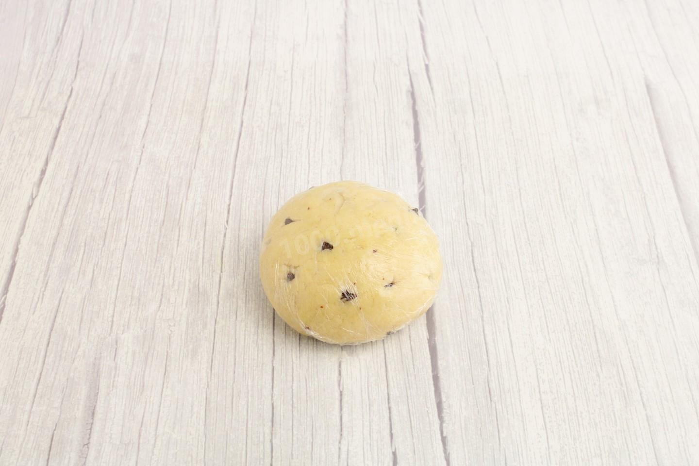 Вмешайте в тесто кусочки шоколада. Долго вымешивать песочное тесто не нужно, иначе готовое печенье будет жестковатым и сухим. О нюансах приготовления песочного теста читайте в конце рецепта по ссылке.