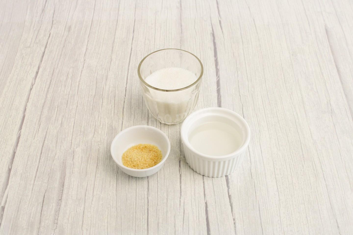 Желатин залейте кипяченой водой комнатной температуры. Перемешайте и оставьте на 15-20 минут до набухания. О нюансах работы с желатином читайте в конце рецепта.