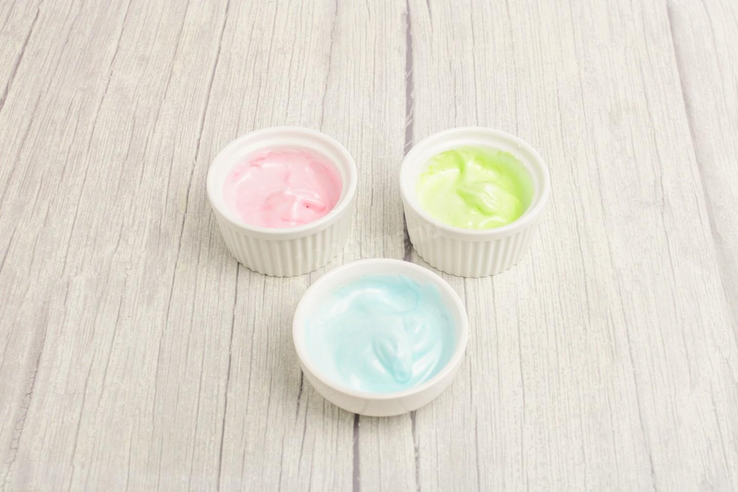 Приготовьте маршмеллоу. Красители используйте по желанию.