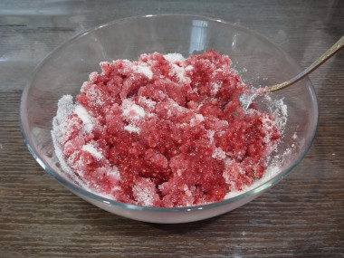 Ягоду слегка помяла толкушкой, засыпала сахаром и перемешала.