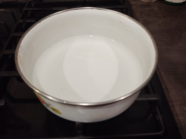 Пектин насыпьте в сотейник, залейте указанным количеством воды. Перемешайте тщательно.